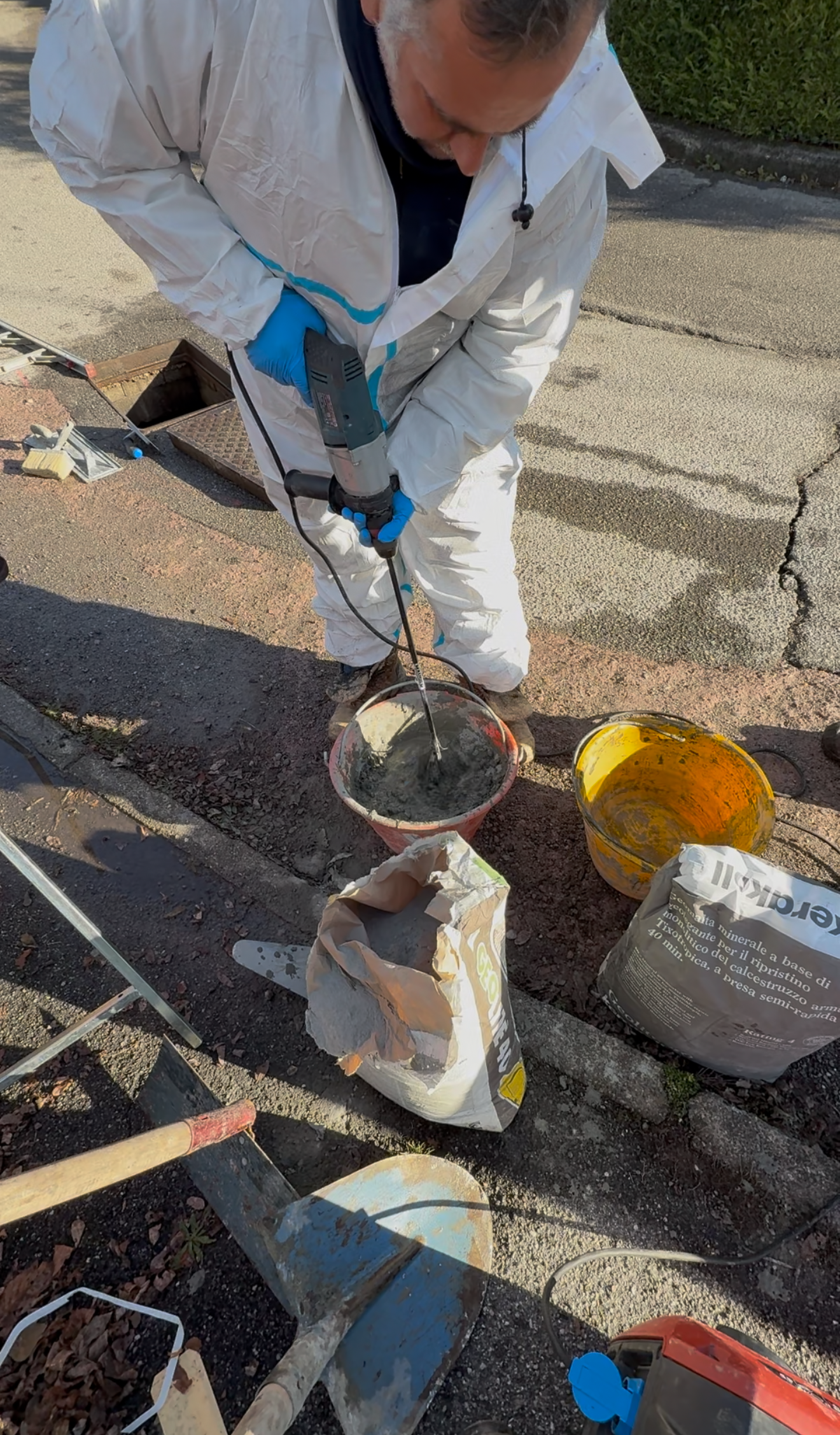 A bordo abbiamo tutto il necessario: dai miscelatori professionali ai materiali tecnici, fino alla strumentazione manuale come secchi e cazzuole. Le tempistiche del lavoro non sono fisse, perché dipendono molto dalle dimensioni della cameretta e da quanto è rovinata, ma l'uso di materiali a presa rapida ci permette di ridurre al minimo il disservizio.